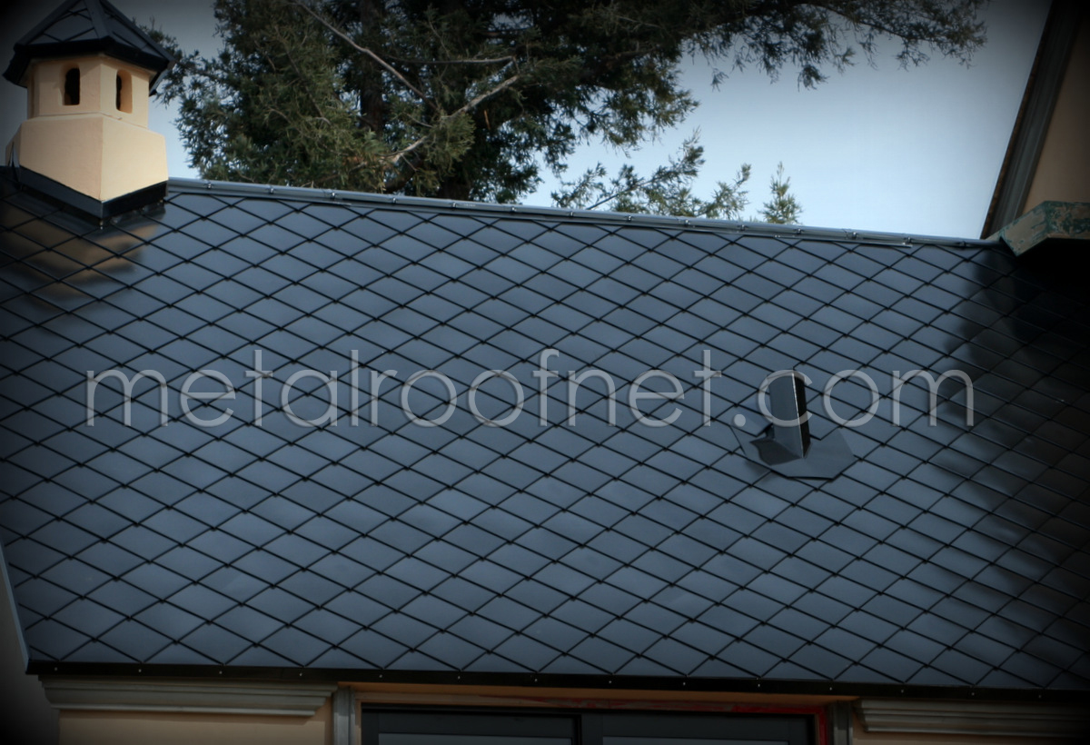 It's official! The first project featuring diamond shingles in our exclusive porcelain-dipped steel - the first roof of its kind in North America - is well underway! This amazing new roofing material is created when glass is exposed to extreme heat - temperatures of about 1300 degrees - and melted onto the individual tiles. This forms a finish that looks like nothing else. The process creates a color density unapproachable by any other process and a finish that is completely unaffected by the sun and other elements. The remarkable color won't fade or deteriorate and it will last hundreds of years. The jewel-like finish makes for a remarkably distinctive roofing material - the perfect top to a remarkable residence or structure.